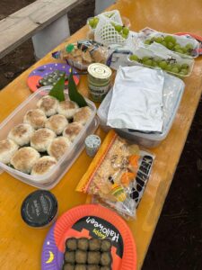 アップルサイダーや、チップス、ブドウにおにぎり、最後は冨田さんがリュックからクッキーを出してくれました。