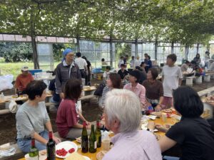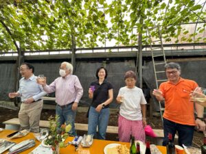 場所は、湘南台の弁慶果樹園の葡萄の棚の下のバーベキューハウス。