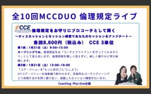 Coaching Plus Oneでは、2026年1月から9月まで、Level3の猪俣恭子と青木理恵、2人のMCCによる倫理規定ライブを全10回にわたって開催いたします。